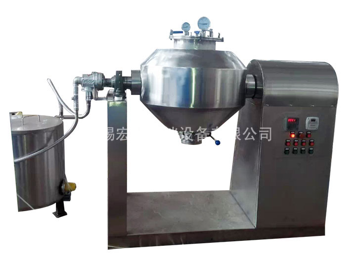 7、加熱干燥型采用雙層或三層桶體設計,采用316不銹鋼發熱管發熱,導熱油為加熱介質,熱量均勻,方便控制;干燥攪拌二合一,關閉“加熱開關”即可用于物料攪拌均化用途;