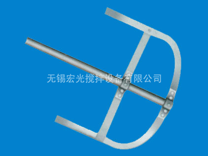 槳葉外緣形狀與攪拌槽內壁要一致,其間僅有小間隙,可清理附在槽壁上的粘性反應產物或堆積于槽底的固體物,保持好的傳熱效果。槳葉外緣的圓周速度為 0.5~1.5m/s,可用于攪拌粘度高達200Pa·s的牛頓型流體。